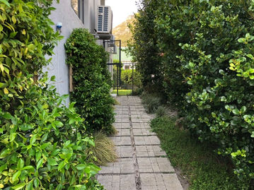 The entertainment area consist of an open-plan kitchen and dining area and moves up into a spacious lounge with attached patio and built in braai. Outside is a lovely shaded outside braai with seating area and small leafy garden. Washing machine and dryer available in an outside laundry room.