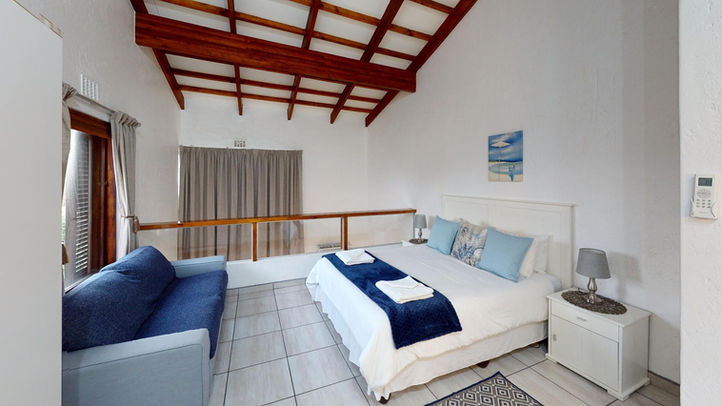 The kitchen has an airfryer, tumble dryer and washing machine while the open plan living area has an aircon, Smart TV and DStv with selected channels. Braai facilities are available on the patio that boasts a lovely view of the lagoon.
