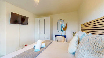 Bedroom 1 has a double bed, aircon and en-suite Bathroom. This Bathroom has a standalone shower. Bedroom 2 has two single beds and an aircon in the room, while Bathroom 2 has a standalone shower as well.